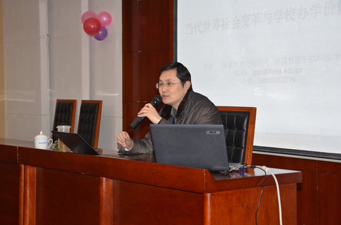 12月20日上午,教育部中小学校长和幼儿园园长国家级培训项目管理办公室常务副主任郭磊教授应邀来beat365,为50名来自甘肃的农村中小学校长作了题为“社会变革时学校管理的价值取向”的讲座。