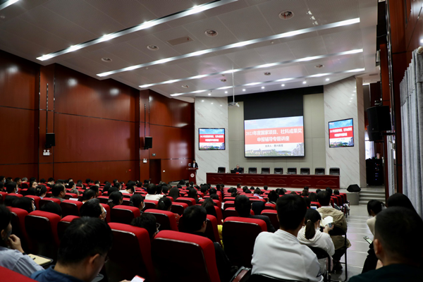 曹兴作专题辅导。他详细梳理了国家社会科学基金项目申报书撰写的重点和难点,围绕“申请人写什么、评审人看什么”的主线,从选题、撰写技巧、项目申请和评审要点等方面深入浅出、全面系统地为与会教师进行了讲解。他指出,申报书是与评审人交流的唯一载体,要做到“不解释,不掩饰”。对于申报与撰写要坚定信心、下定决心、保持耐心、不断打磨。在谈到社科成果奖申报时,他指出,老师们要对标补短,找准问题,分析原因,加强成果凝练总结,不断提高申报材料的质量。