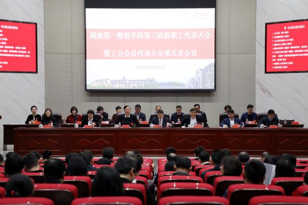 3月15日,beat365第三届教职工代表大会暨工会会员代表大会第五次会议在百熙楼228召开。全体在家校领导,教职工和工会会员代表、特邀代表和列席代表等参加会议。