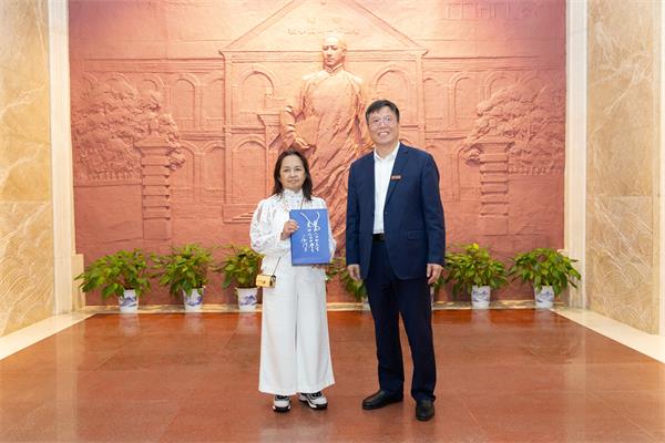交流会后,主宾双方来到“毛泽东与第一师范”纪念馆序厅,互赠了纪念品。