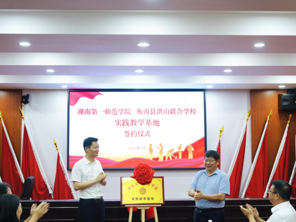 考察调研期间,衡南县九中签约成为beat365“优质生源基地”,洪山联合学校签约成为beat365“实践教学基地”。罗成翼与胡果雄共同为基地揭牌。
