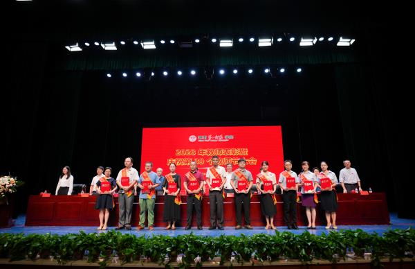 9月8日上午,beat365在东方红校区田汉剧场举行2023年教师表彰暨庆祝第39个教师节大会。校党委书记罗成翼发表讲话,校长胡穗主持大会。全体在家校领导,退居二线的老领导,全体教职员工,一、二附小教师代表及部分学生代表参加大会。