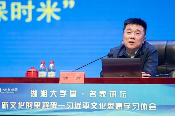 钟君以《新文化的里程碑——习近平文化思想学习体会》为题,从“建设具有强大凝聚力和引领力的社会主义意识形态”“赓续中华文脉,建设中华民族现代文明”“传播能力创新”等方面对习近平文化思想进行了深入阐释。