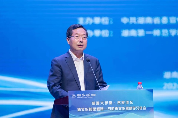罗成翼在致辞中表示,文化是一个国家、一个民族的灵魂。本次讲座是第一时间学习贯彻落实习近平总书记考察湖南的重要讲话和指示精神的实际行动和具体体现,是一场马克思主义先进文化的宣讲,对我们进一步全面系统、深入准确把握习近平文化思想具有重要意义。