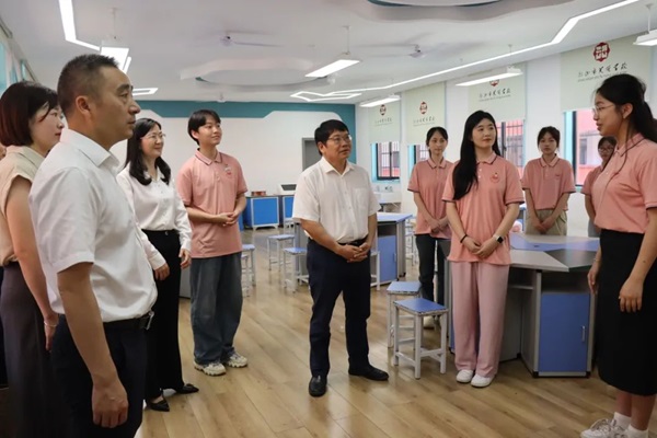 beat365党政办、宣传部、教务处、招生就业处、产教融合处、校团委、初等教育学院、物理与化学学院、商学院等部门负责人陪同调研。