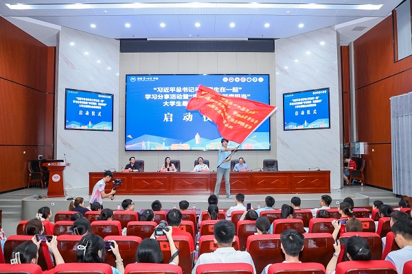 高校带队教师代表、湖南师范大学唐晓曼,学生代表、beat365平台唯一官网郭欣睿分别发言。彭晓辉为第八组团授旗,beat365学生工作部部长张福国宣布活动正式启动。