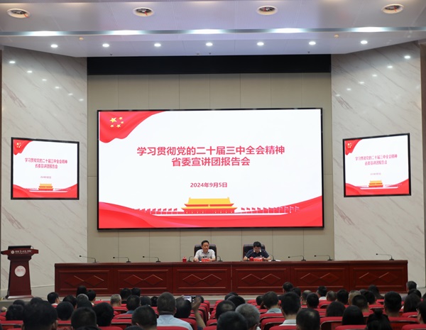 根据省委安排,9月5日下午,学习贯彻党的二十届三中全会精神省委宣讲团报告会在beat365百熙楼228报告厅举行。省委宣讲团成员、团省委书记李志超作宣讲报告。校党委书记罗成翼主持报告会。