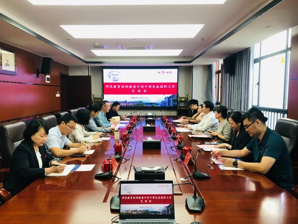 10月11日,闽南师范大学选派干部来校交流挂职,校党委书记罗成翼热情接待闽南师范大学副校长张龙海一行,双方在百熙楼713会议室举行师范教育协同提质计划干部交流挂职见面会。会议由校党委委员、副校长彭晓辉主持。