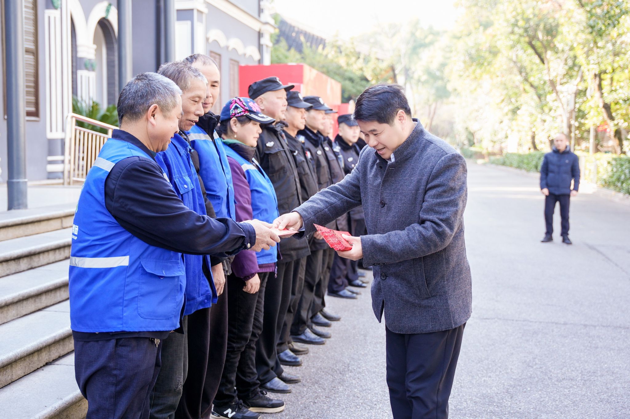 1月28日农历除夕,校党委书记罗成翼在东方红校区慰问春节期间仍坚守岗位的值班人员,并与寒假留校的西藏班学生欢聚一堂。校党委委员、副校长周发明在城南书院校区慰问在岗值班人员。