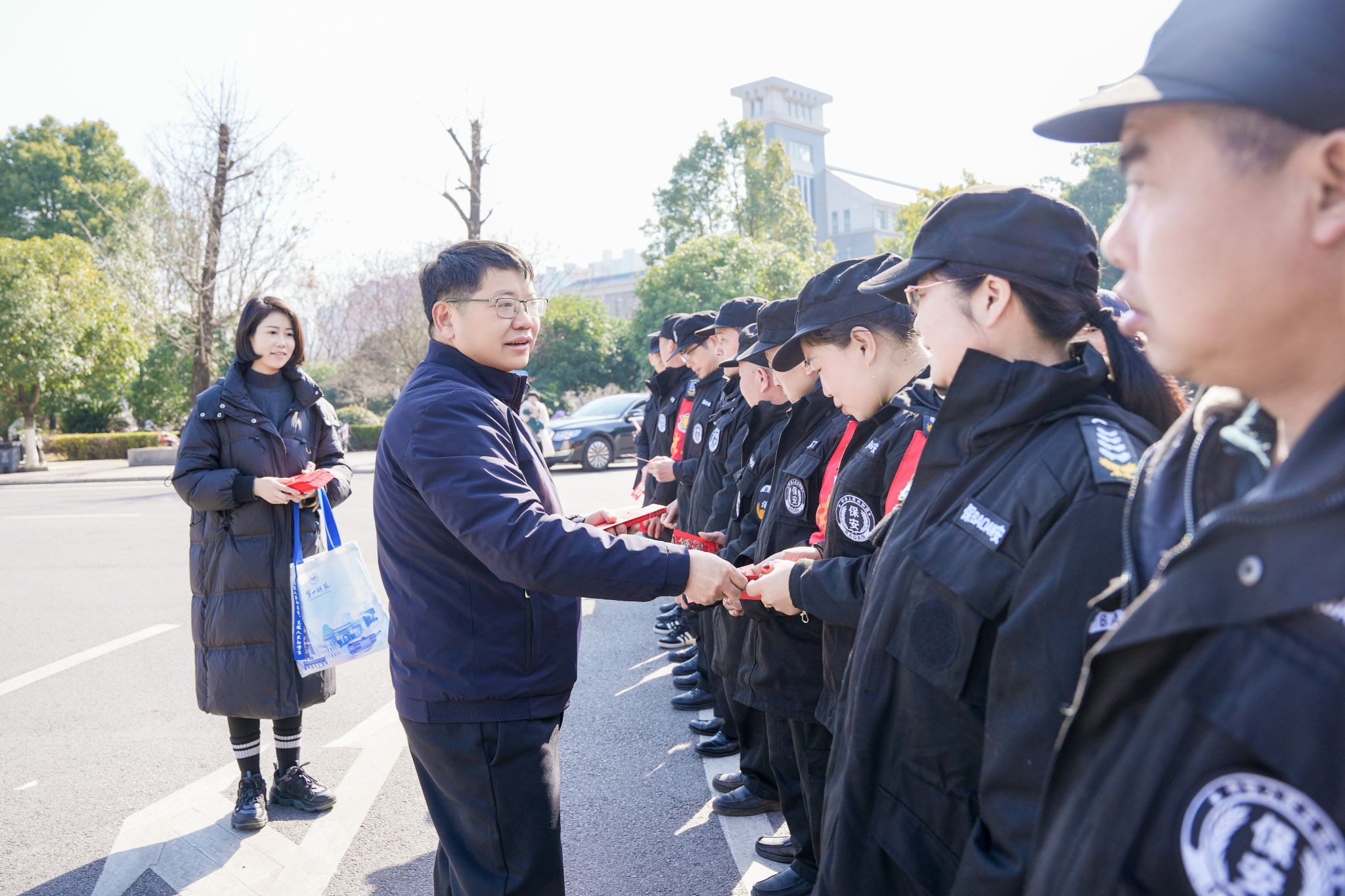罗成翼与值班人员亲切交谈,向坚守岗位的工作人员致以诚挚的感谢、美好的新春问候,并送上节日慰问金,感谢他们在万家团圆之际舍小家为大家,为保障留校师生的正常食宿、校园水电的正常供应、维护校园安全稳定所作出的努力。罗成翼在交谈中指出,即将过去的甲辰龙年是一师发展史上具有里程碑意义的一年,这一年里一师取得的诸多突破性成就,离不开每一位员工的辛勤付出。希望大家在新的一年里,牢记嘱托、接续奋斗,积极投身学校的大改革快发展,为建设特色鲜明的师范大学贡献力量。