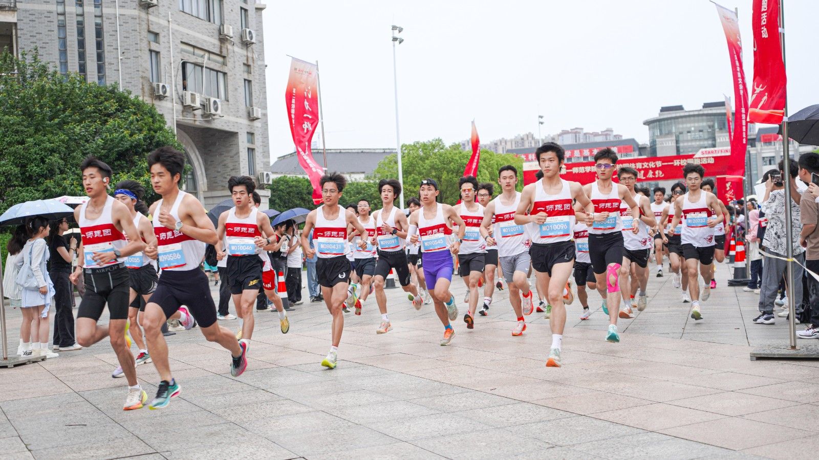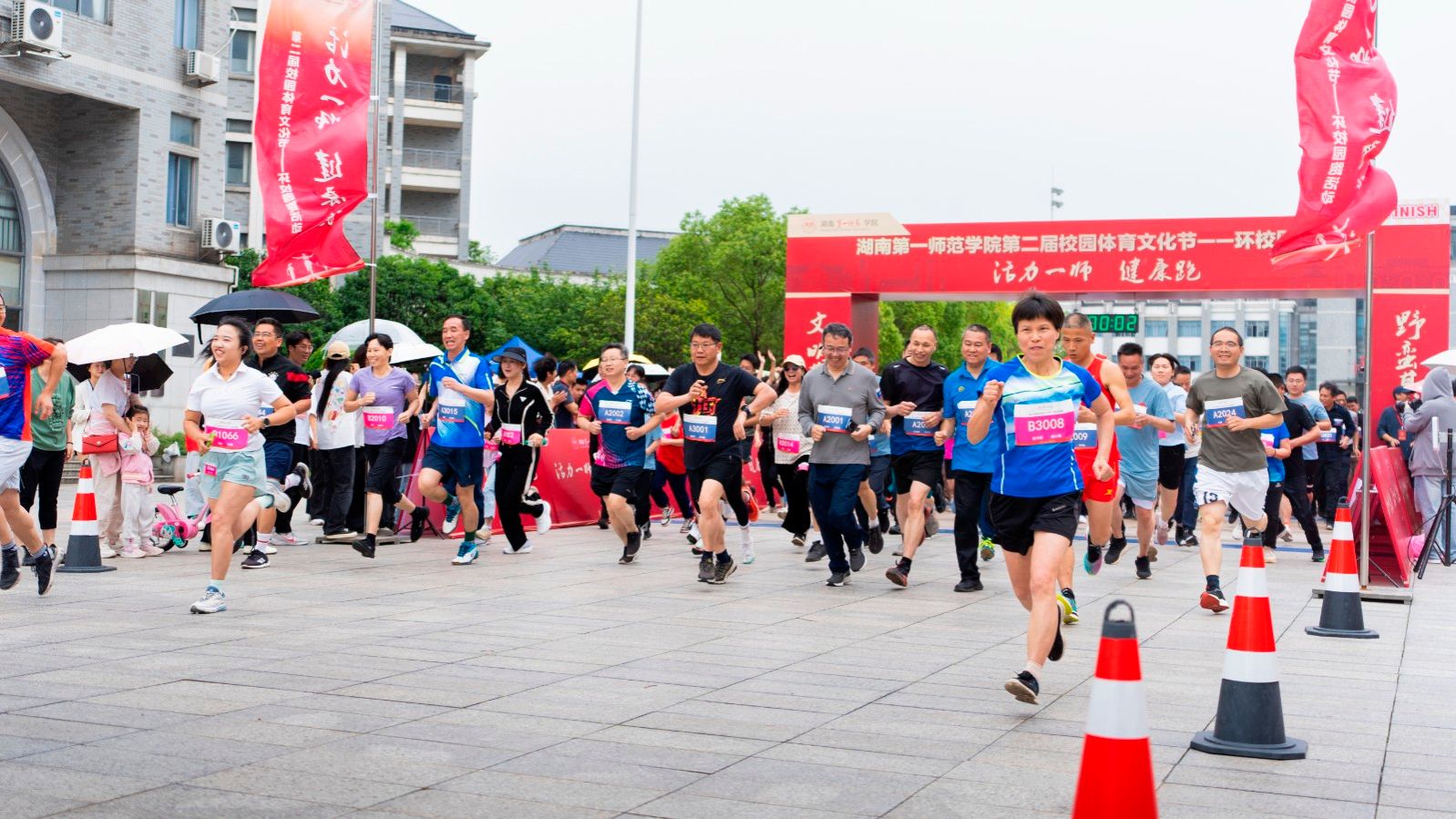 下午3时20分,罗成翼宣布开幕。教师组比赛率先展开。参赛教师们精神抖擞地列阵起跑线前,蓄势待发、充满斗志,在发令枪鸣响时如离弦之箭般冲出起点。沿着精心规划的校园环线,选手们穿梭于百熙楼、综合体育馆、教学科研大楼(立园楼)、工科大楼(金城楼)等校园标志性建筑之间,既展示了坚韧不拔的斗志、奋勇争先的风采,又彰显出彼此激励、互相帮助的团队精神,共同完成全程挑战。