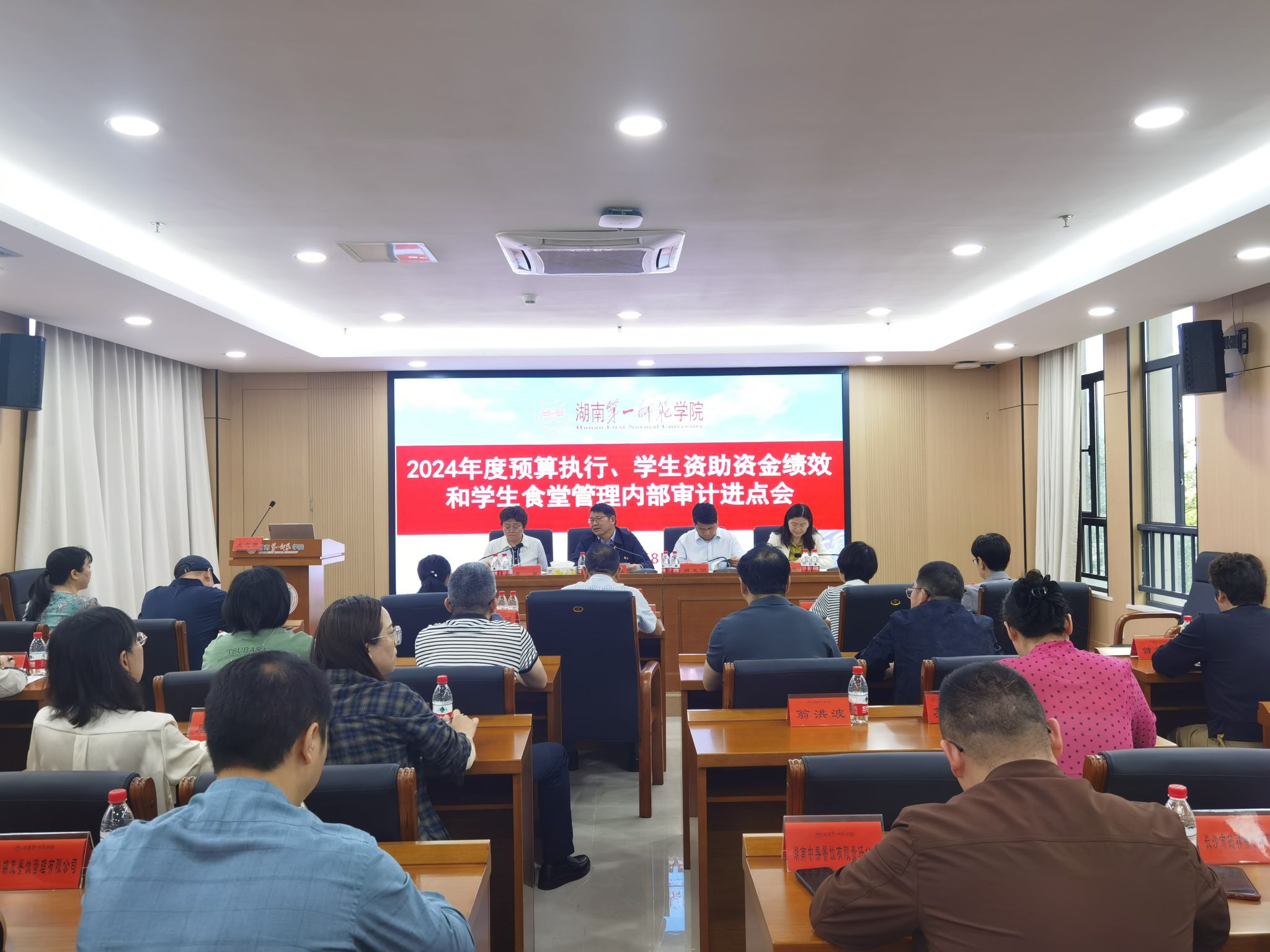 会上,相关人员宣读了湖南省教育厅《开展2024年度预算执行、学生资助资金绩效和学生食堂管理内部审计的通知》及《审计通知书》。随后,财务处、学生工作部、后勤处负责人以及湖南大宇联合会计事务所董事长吴翠兰依次发表表态发言。其中,审计团队承诺,将凭借严谨的工作作风、专业的业务能力和务实的工作态度,高质量完成此次审计任务,为学校呈上一份客观、公正且极具价值的审计报告。