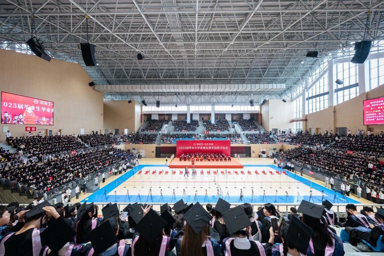 亲爱的同学们,当你们即将迈出校门,让我们回望,这四年里滋养你们成长的,是怎样的一方沃土?在这里,妙高峰的云霞浸染过千年文脉的墨香,城南书院的窗台见证了同学少年的风华,教室的黑板书写了无数教育报国的动人故事。在这里,红色基因锻造了你们追求真理、为国为民的使命担当;千年文脉教给了你们学思并进、求是创新的为学之道;百年师范涵养了你们扎根一线、教育报国的理想情怀;伟人精神赋予了你们奋勇前行、砥砺成长的青春力量。2025届的毕业生们,你们是承载着特殊使命的一届!作为学校“一四”战略全面实施的首届毕业生,你们既是办学新理念的践行者,也是学校跨越式发展的见证者。我很幸运与同学们有缘,同样是四年前,我踏着四月的春风而来,你们迎着九月的秋风而至。春华秋实,在这四年里,我们一同见证和创造了一个又一个高光时刻:记忆中,最最激动的是习近平总书记亲临学校考察并给予学校“‘大思政’要抓好,红色资源要用好,第一师范要办好”的殷切嘱托;最荣耀的是百廿校庆,八方来贺,我们向社会各界展示了百年办学成就,宣示了未来发展目标;最自豪的是凝心聚力,申硕攻坚,学校办学层次实现历史性突破;最欣慰的是考研录取率从6.39%跃升至22.24%,是招生规模扩大但录取分数线却稳居高位;最幸福的是看到精神地标一师红墙、开放大气的新体育馆、现代气息的新工科楼、温馨舒适的一栋栋新宿舍楼拔地而起,两个校区的运动场焕然一新等等。我们跑出了一师发展的加速度,勾勒出一幅文脉味与现代风交融的新一师画卷……这一切的一切,归功于思想解放的精神旗帜、改革创新的凤凰涅槃、众志成城的奋斗实践,是全校师生员工对时代伟力的生动礼赞!你们既是一师大变革、大发展的受益者,更是这一波澜壮阔图景的描绘者和贡献者。