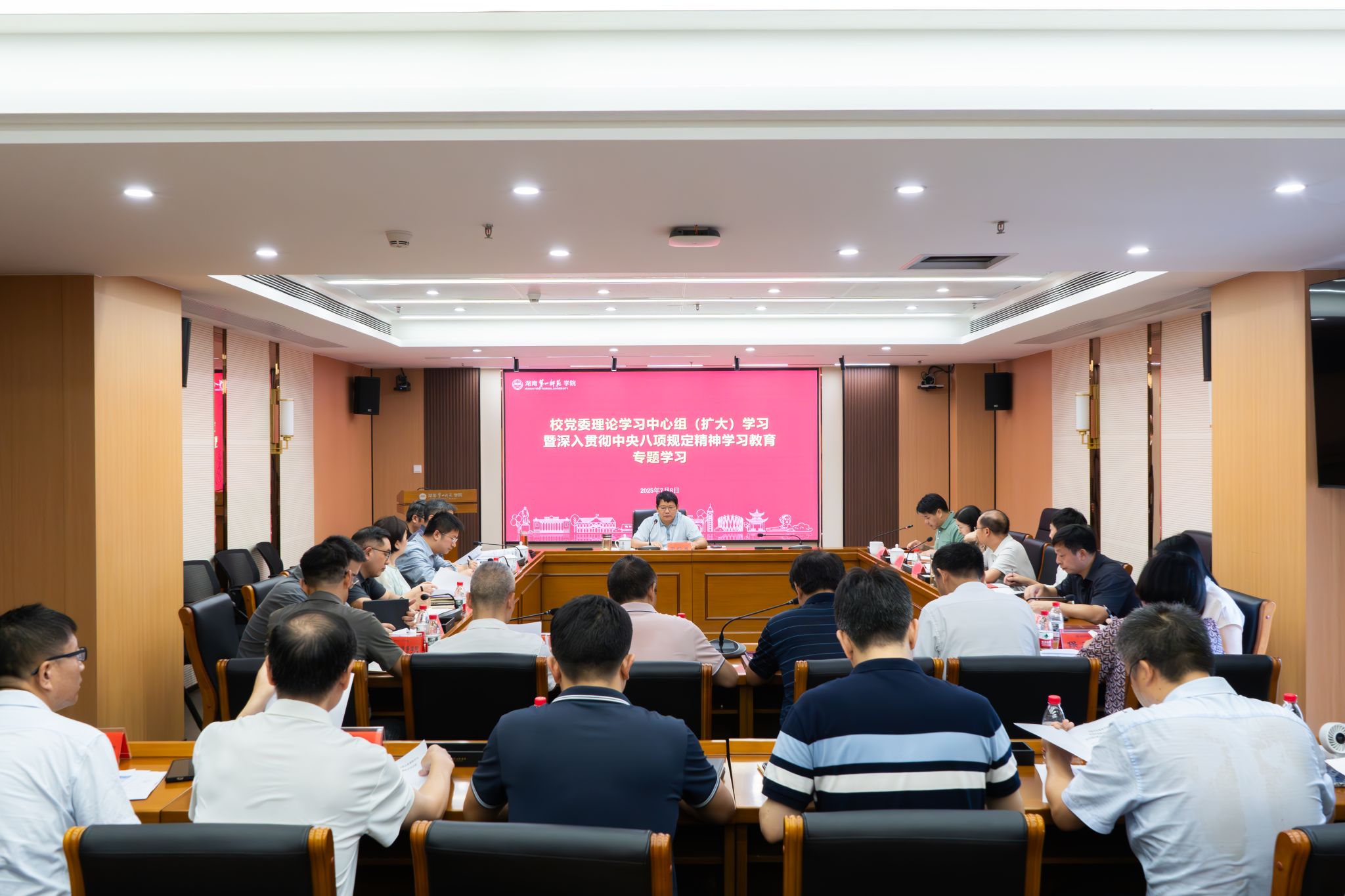 7月8日上午,校党委理论学习中心组在百熙楼701开展第七次集体学习(扩大)暨深入贯彻中央八项规定精神学习教育专题学习,校党委理论学习中心组全体成员,党政办公室,组织部,宣传统战部,纪委、监察专员办公室,教师工作部,学生工作部、团委,招生就业处,保卫部负责人,各二级党委书记参加学习。党委书记罗成翼主持学习并作总结讲话。