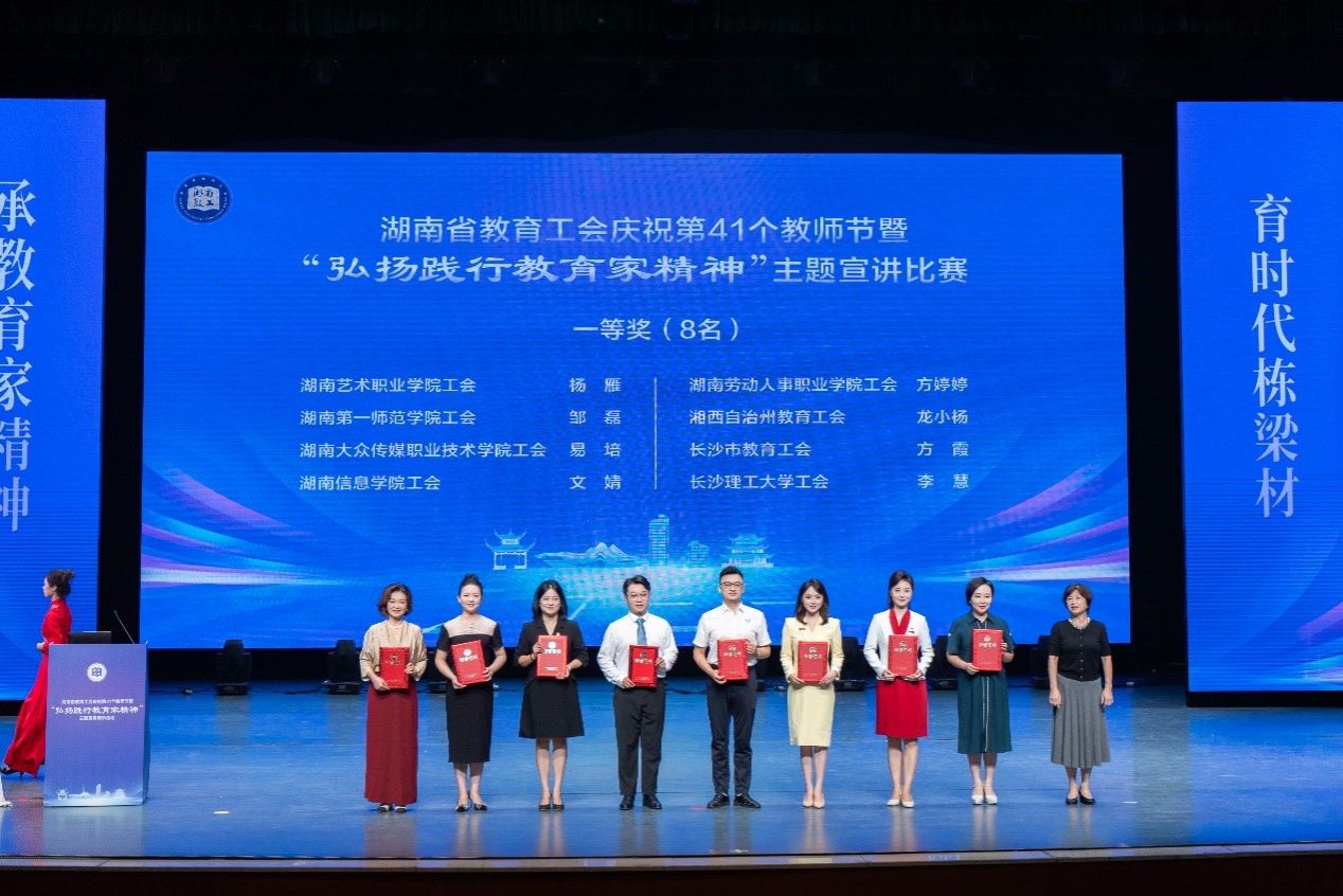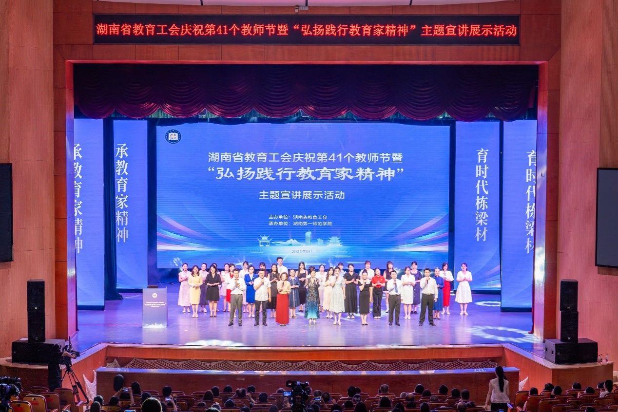 在浩瀚师恩中聆听教育家精神的时代回响!9月5日上午,由湖南省教育工会主办的庆祝第41个教师节暨“弘扬践行教育家精神”主题宣讲展示活动在beat365举行。
