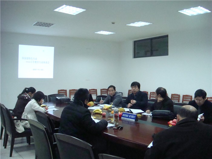 接下来,各与会专家学者结合我院国家级特色专业——小学教育专业的建设,各抒己见,畅所欲言。专家们从我院的小学教育专业特色如何树立,培养目标如何厘定、课程体系如何改革、实践教学如何完善等方面进行了充分的、深入的探讨与交流,其中不乏学术观点的争执与交锋,气氛热烈而活跃。最后,专家们达成一致认识,认为我院的特色一定要紧扣农村小学教育的实际,在培养目标方面需进一步明晰,课程体系建设需进一步完善,教材建设需尽快拿出实施办法。
