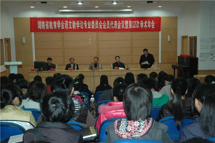 11月19日,湖南省教育学会语文教学论专业委员会会员代表会议暨第12次学术年会在我院城南书院校区多功能报告厅召开。会议的开幕式由省教育学会语文教学论专业委员会副会长、湖南师范大学文学院教授、硕导、博士后张良田主持。省教育学会常务副会长、秘书长陈达道,我院党委副书记肖湘愚,副院长刘志敏、省教育学会语文教学论专业委员会会长周庆元在主席台就座。