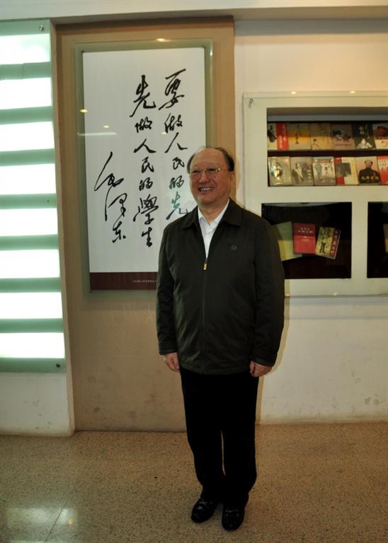 徐院士参观到第一展厅,在青年毛泽东塑像前与院领导合影留念,之后他特别提出要在毛泽东给beat365题写的“要做人民的先生,先做人民的学生”的题词前留影。他深情地告诉大家:“我也做过28年老师。”这充分表明了作为一名人民教师的他对主席教诲的深刻领悟,也深深表达了他对主席的崇敬之情。