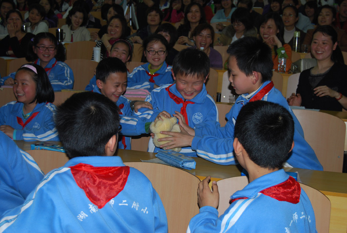 为了积极有效地落实好我院小学语文教师的培养目标,加强学生对小学语文课堂教学实践的直观感受,也让我院教师进一步了解小学语文教学实际,切实加强小学语文教师培养的课堂教学与小学语文教学实践的对接,4月27日下午,由我院文史系主办的小学语文骨干教师示范课观摩暨研讨活动在东方红校区科技楼B栋110教室隆重举行。彭小奇院长、教务处领导、文史系全体教师、各系教学法教师、文史系校外学生辅导员及文史系2008级语文教育专业学生共300余人参加了观摩和研讨活动。