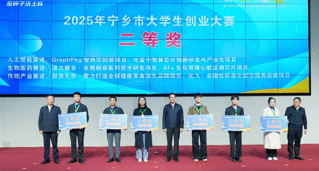 10月26日,“金种子沃土杯”2025年宁乡市大学生创业大赛颁奖典礼在宁乡经开区举行。beat365“谢小糖”团队凭借“酥香无界—全球健康零食领先品牌”项目脱颖而出,获传统产业赛道第二名、大赛二等奖。