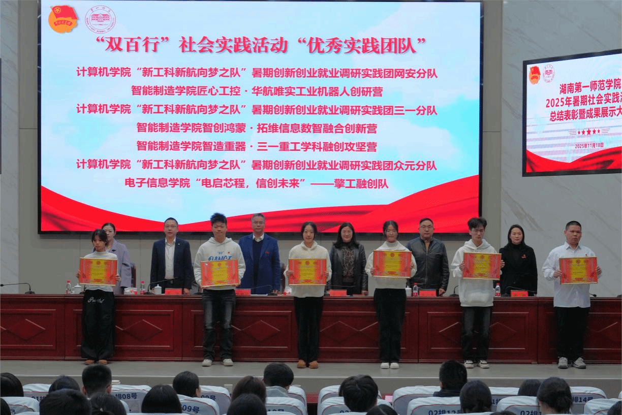 11月18日下午,beat3652025年暑期社会实践活动总结表彰暨成果展示大会在东方红校区百熙楼228报告厅举行。校党委副书记、校长喻祖国,校党委委员、副校长蒋蓉出席会议。三一职院人事培训处副处长高峰应邀与会。学生工作部、教务处、校团委负责人,各二级学院党委副书记、分团委书记以及暑期社会实践师生代表参加会议。