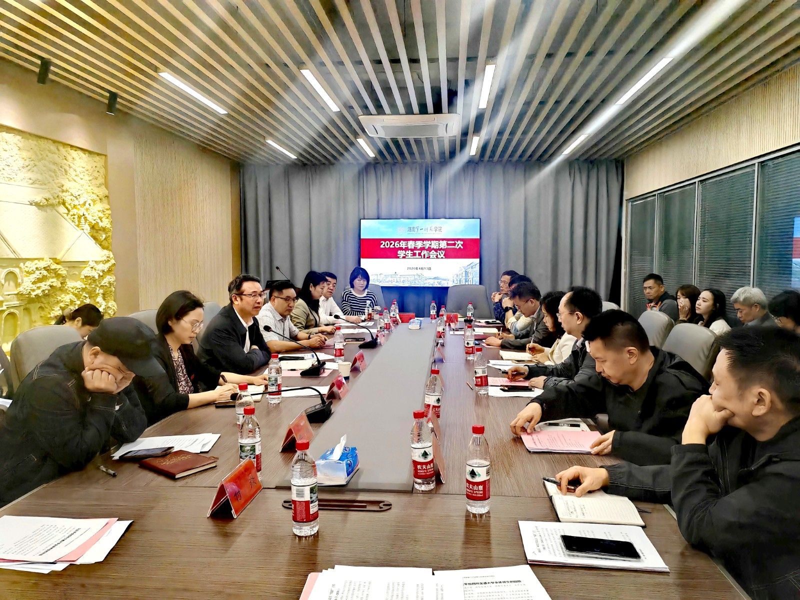 会上,学生工作部作了“树立和践行正确政绩观,深耕细作育人主阵地”的专题报告。会议对学生日常管理、就业指导、安全稳定、意识形态、团学工作等进行了全面部署,重点分析研判了近期学生心理工作情况,并明确下阶段具体工作任务。