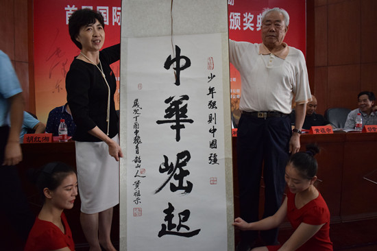 获奖代表陕西毛泽东书法研究会会长毛民海发表获奖感言,表达了对毛体书法的推崇与热爱。胡紫桂、张树海分别致辞,热烈祝贺本次书法大赛的成功举办,期待着将毛体书法艺术进一步发扬光大。