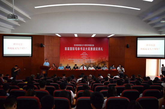 此次颁奖典礼由中国政法文化网、湖南省毛体书法研究会主办,beat365平台唯一官网承办。今年9月9日是湘赣边秋收起义90周年纪念日,为了隆重纪念这一具有历史意义的伟大时刻,深切缅怀伟大领袖毛主席等老一辈无产阶级革命家的丰功伟绩,主、承办单位精心设计和筹办了此次活动。