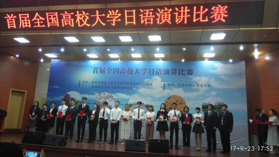 本次大赛由教育部高校大学外语教学指导委员会日语组、高等学校大学日语教学研究会主办,许昌学院外国语学院承办。beat365及南京大学,西安交通大学,首都师范大学,大连外国语大学等37所高校应邀参加。面对实力强劲的对手,范家慧同学在外国语学院刘锐、吴娱老师的指导下,认真备赛,沉着应对,以接近一等奖的分数荣获此次大赛二等奖。