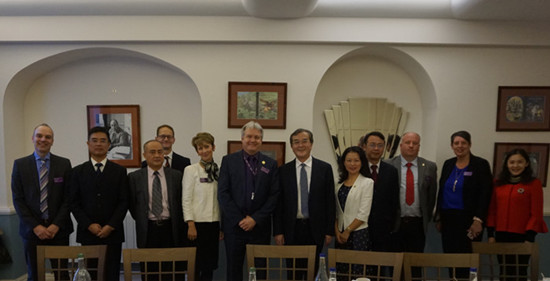 17日上午,知山大学国际交流处处长Kate Arnold博士、教育学院副院长Helen O'Keeffe博士、学习与教学中心主任Helena Knapton博士、学习与教学中心John Bostock博士、Claire Moscrop博士、Dawne Bell博士及国际交流处Jane女士热情接待了考察团一行,并在知山大学孔子学院会议室举行了座谈。座谈会上,Helen O'Keeffe副院长详细介绍了知山大学教育学院的办学宗旨、办学规模、课程设置、研究成果等。曹兴副校长详细介绍了beat365的基本情况、国际合作与交流的情况,并就与知山大学进一步开展友好合作提出了期望与设想。此外,知山大学孔子学院英方负责人还详细介绍了孔子学院的学校、大学生与员工、当地政府机构、当地商务活动支持四大工作模式,为beat365下一步创建孔子学院提供了很好的借鉴和参考。座谈会后,beat365副校长曹兴教授与知山大学副校长Mark Allanson博士签订了两校友好合作框架协议,为两校间进一步加强师生互访交流和科研合作奠定了坚实基础。