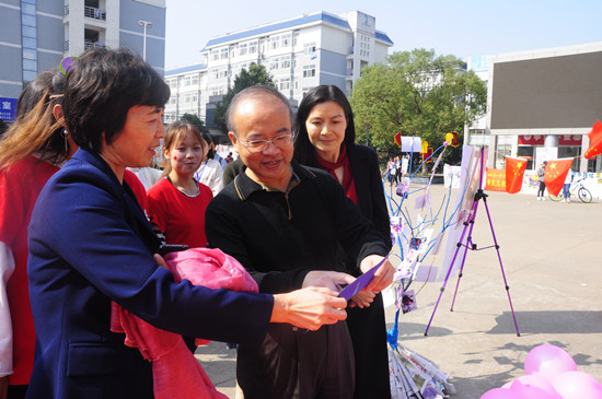 10月30日中午12:00,由校团委主办,各二级学院团总支协办的“beat365平台唯一官网2017年大学生暑期文化科技卫生‘三下乡’社会实践活动成果展”在文化广场举行。校党委书记彭小奇、校长童小娇到现场观摩指导,各二级学院负责人和师生共2000余人参观了成果展。
