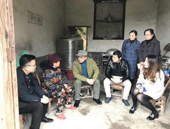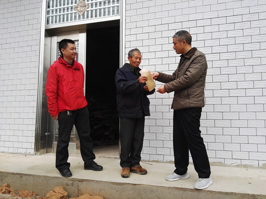 后勤处党支部全体党员在支部书记杨家福的带领下,来到了白泥村洞背组陈听其的家中进行慰问。全体党员认真听取了陈听其亲友对陈听其家里情况的介绍,得知陈听其的妻子患糖尿病,不能劳作,需要人照顾,因此,陈听其不能外出打工赚钱,只能在附近的村里做点零工,照顾生病的妻子。另外,陈听其还有一位97岁高龄的母亲需要赡养,家境贫困。全体党员对其深表同情。杨家福同志握着母亲的手,亲切地与之交谈,并赠送米、油及帮扶资金600元。针对陈听其的情况,全体党员进行了讨论,并制定了帮扶方案。