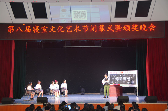 闭幕式晚会通过寝室文化优秀作品和文艺节目,展示了beat365学生寝室文化建设的丰硕成果。其中美术与设计学院的综合型优秀男生寝室汇报获得大家的一致好评,《宝贝》+《想把我唱给你听》+《玩乐》歌曲串烧、小品《爆笑课堂》、舞蹈《巴郎》等节目,搏得了观众的阵阵掌声。