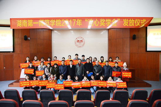长沙洗心基金会办公室谭锷泉先生、谭志强先生和谭雪婷女士,beat365校友会(基金会)秘书长邓朝晖、学生工作处副处长欧阳伶俐、各学院学工办主任、资助专干以及beat365荣获2017年度“洗心奖学金”的30名学生和学生代表参加颁奖仪式。