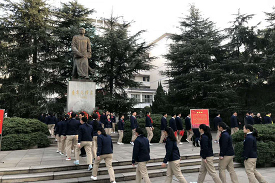 仪式结束后,全体人员怀着无比崇敬的心情,绕青年毛泽东铜像一周,表达对伟人的追思和缅怀。