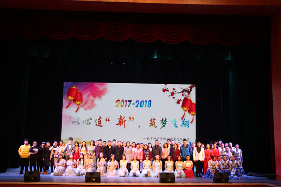 12月25日晚,教育科学学院2018年“以心连‘新’,筑梦飞翔”元旦晚会在田汉剧场隆重举行。校长童小娇,学生工作处、教务处、公共实验管理中心、美术设计学院等部门负责人应邀出席,与教育科学学院近800名师生一起观看了晚会。