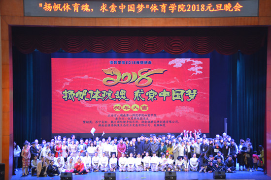 12月27日晚,体育学院2017年“扬帆体院魂,求索中国梦”元旦晚会在东方红校区田汉剧场隆重举行。副校长刘宇、学生工作处相关负责人应邀出席,与体育学院全体师生共同观看演出。体育学院院长黄依柱发表了热情洋溢的新年致辞。