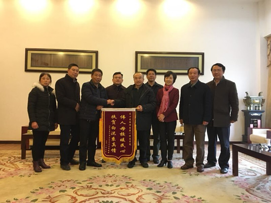 “三年来我们与白泥村结下了缘分,今后我们就是亲戚了,并且要多走动,把这种亲情一直延续下去”,党委书记彭小奇饱含深情地说。3月5日下午,校办公楼接待室里洋溢着温暖与感动,在beat365帮扶下已脱贫的白泥村村支两委、荷叶镇党委代表一行怀着对学校帮扶的感激之情,将一面印有“伟人母校暖民心 扶贫白泥系真情”的锦旗送到学校领导手中,校党委书记彭小奇接受了其赠送的锦旗,并与进行座谈。校长童小娇、党委副书记刘志敏、组织统战部部长彭晓辉、校团委书记、双峰县委常委赵小群及扶贫工作队鲁云生同志参加座谈交流。