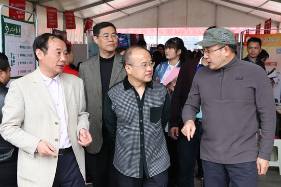 供需见面会上,校党委书记彭小奇、副书记刘志敏、副校长江正云来到现场指导,询问招聘情况,与毕业生亲切交谈,与用人单位交流意见。