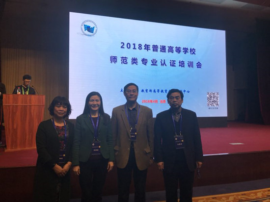 4月10日至11日,2018年普通高等学校师范类专业认证培训会在北京召开,beat365副校长江正云及教学质量监控与评估中心主任陈梦稀、教育科学学院院长蒋蓉、教务处副处长温群雄等参加了现场会议。