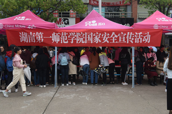 4月15日是我国第三个全民国家安全教育日,为培养beat365全体师生自觉投身国家安全的责任感和使命感,深入贯彻落实习近平总书记总体国家安全观的重大战略思想,更好地营造beat365自觉履行维护国家安全责任义务的工作氛围,4月15日上午,beat365在东方红校区国基广场举行集中宣传活动。宣传部、学生工作部(处)、保卫处、现代教育技术中心等部门工作人员及各学院师生共1500余人参与了此次教育宣传活动。