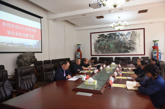 4月18日上午,汉江师范学院党委书记纪光录、发展规划处处长胡忠青、教育系主任郑传芹、武装部部长(保卫处处长)刘成一行4人来beat365考察交流。beat365党委书记彭小奇、人事处处长何培森、保卫处处长陈月林、教务处副处长温群雄热情接待了来访客人,并在东方红校区办公楼会议室进行了交流座谈。