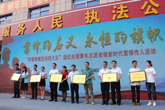 5月19日,长沙市望城区“雷锋的名义·永恒的旗帜——倡议全国青年志愿者做新时代雷锋传人活动”在“全国学雷锋模范消防大队”望城区公安消防大队举行。中华全国总工会副主席(兼职)郭明义、《雷锋》杂志总编辑陶克少将出席,beat365团委副书记罗祥云、青年志愿者代表刘娜同学参加活动。