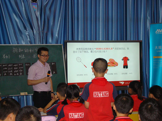 本次活动主题是聚焦数学核心素养、提高课堂教学质量,内容为小学数学教材中的单元整理与复习、总复习、问题解决。课堂上,曾平老师从日常生活中打折促销的情境切入,选取较常见的满减、满送两种折扣进行重点分析和研究,通过举例发现、列表整理、图像描述,渗透数形结合的思想,引导学生发现问题、提出问题、分析问题、解决问题,从而把核心素养的培养落到实处。曾老师以其风趣幽默的教学引导学生用数学的眼光来观察,用数学的思维去思考,用数学的语言来描述,其出色的授课表现得到了现场评委和听课老师的一致好评,赢得了满堂喝彩。