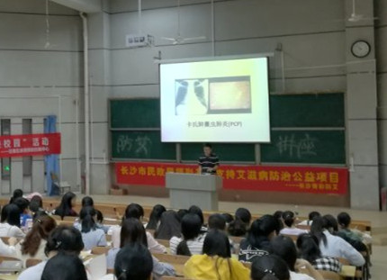 为进一步宣传艾滋病的预防知识,不断增强同学们的防艾意识,更好地预防艾滋病的传染,5月22日晚,学校后勤处、团委、青总会、长沙市青彩防艾志愿者服务中心,联合邀请长沙市岳麓区疾病预防控制中心主治医师吴昊来校,在东方红校区怀中楼报告厅举办了防艾知识教育讲座。学校近300多名学生聆听了讲座。