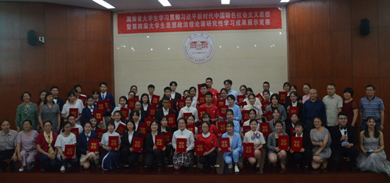 5月26日,湖南省大学生学习贯彻习近平新时代中国特色社会主义思想暨第四届大学生思想政治理论课研究性学习成果展示竞赛在beat365圆满落幕。省教育厅副巡视员左清、beat365党委书记彭小奇、校长童小娇、省委教育工委宣传部、beat365党委宣传部、教务处相关负责人,马克思主义学院全体教职工以及省内本科高校的领导、专家出席本次活动。