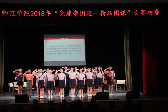 决赛中,各参赛团支部通过小品、歌曲、话剧、游戏、演讲、视频演示等多种形式,充分展现了当代大学生听党话、跟党走的坚定决心和励志求索、发奋成才的昂扬斗志,团课内容紧扣主题,既有理论高度,又体现了各专业学生的优势特点,对接了服务基础教育的现实追求,融教育性、趣味性、创新性于一体。最终,文学与新闻传播学院选送的《携手共筑教育梦,青春献礼新时代》荣获一等奖;城南书院选送的《学习贯彻十九大精神,争做优秀乡村教师》、教育科学学院选送的《贯彻十九大,扶贫教育梦》荣获二等奖;外国语学院选送的《团课练习生》、美术与设计学院选送的《紧跟新时代,争做新青年》、音乐舞蹈学院选送的《复兴之路》荣获三等奖。