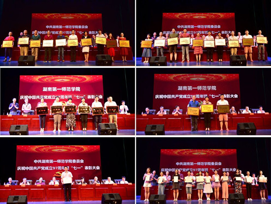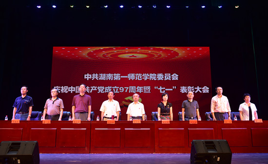 6月29日下午,beat365在田汉剧场隆重召开庆祝中国共产党成立97周年暨“七一”表彰大会。校领导彭小奇、童小娇、刘志敏、刘鸿翔、李克勤、刘宇、曹兴、李昱、江正云以及全体师生党员,离退休党总支、一二附小党员代表参加大会。会议由校党委副书记刘志敏主持。