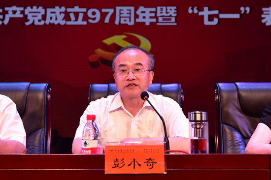 校党委书记彭小奇在讲话中代表学校党委向全校各级党组织和广大共产党员致以节日的问候,向受到表彰的先进集体和个人表示热烈的祝贺,向长期以来为学校建设发展默默奉献的师生员工表示崇高的敬意。彭小奇指出,今后两年是beat365硕士学位授权单位建设和本科教学质量提升的关键期、本科教学工作审核评估的重要准备期。全校各级党组织一定要从大处着眼,从细节做起,团结带领广大党员和全体师生员工,咬定目标、勇挑重担、争当先锋、奋力攻坚。他希望我们全体共产党员发扬党的优良传统,增强党员的责任感和使命。牢记党的宗旨,争做忠诚干净担当的共产党人。夯实党建基础,发挥各级党组织的坚强领导核心作用。各级党组织要切实履行全面从严治党主体责任,充分发挥核心作用,全面落实党支部“五化”建设要求。不忘初心、牢记使命,深入学习贯彻党的十九大精神,在习近平新时代中国特色社会主义思想指导下,坚持全面从严治党,坚持立德树人根本任务,不断提高人才培养质量和办学水平,为一师再创辉煌而不懈奋斗。