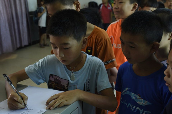 待分班意向表填完,离下午正式上课还有一段时间,志愿者老师们将学生们随机分成四批带入各自的特色教室,以便孩子们进一步了解每一门课程的教学内容。